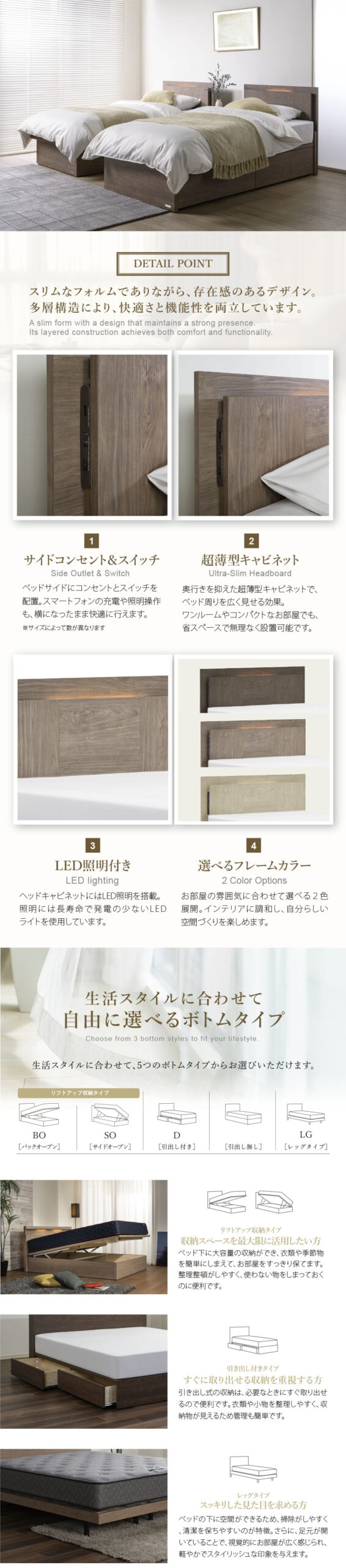 * BO DX 収納寸法 頭部側 W(S:675,M:925,D:1105,WD:1245)×L965×H190(FH260),H265(FH335),H380(FH450)