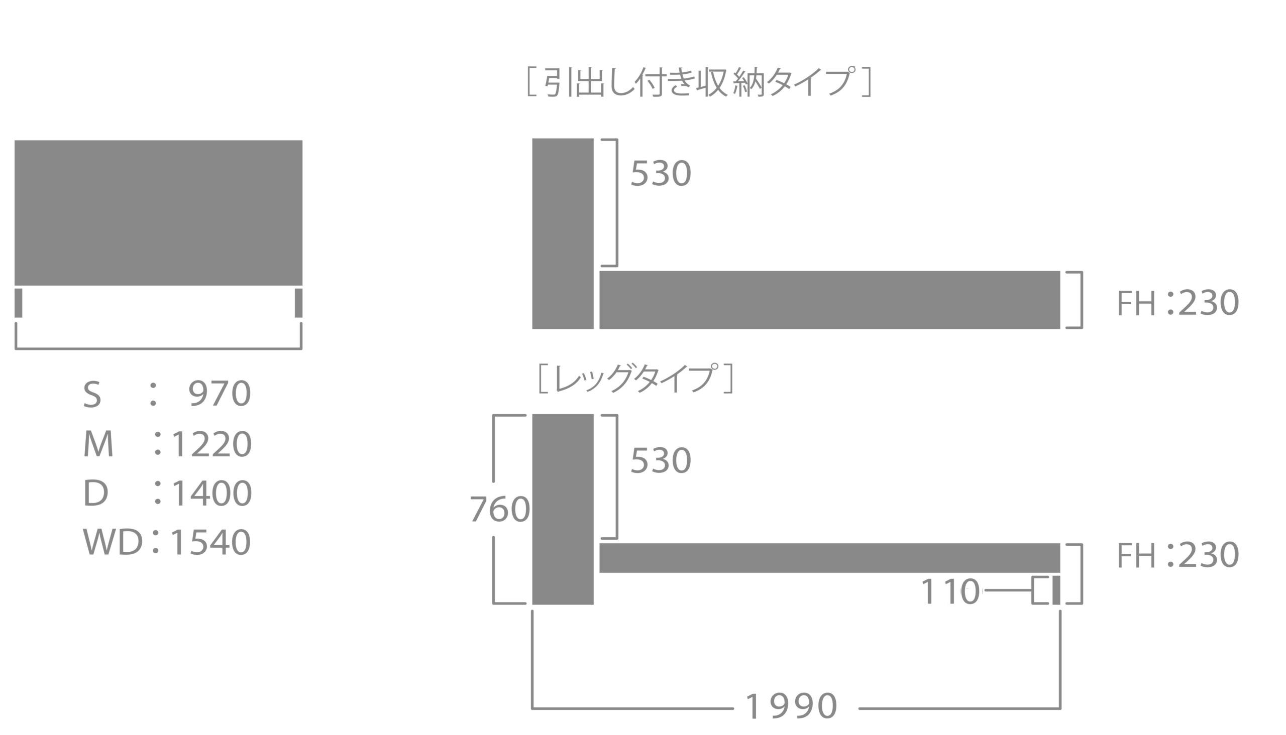 | ワイドダブル | W1540×L1990×H760(FH230)mm | ¥96,800 |